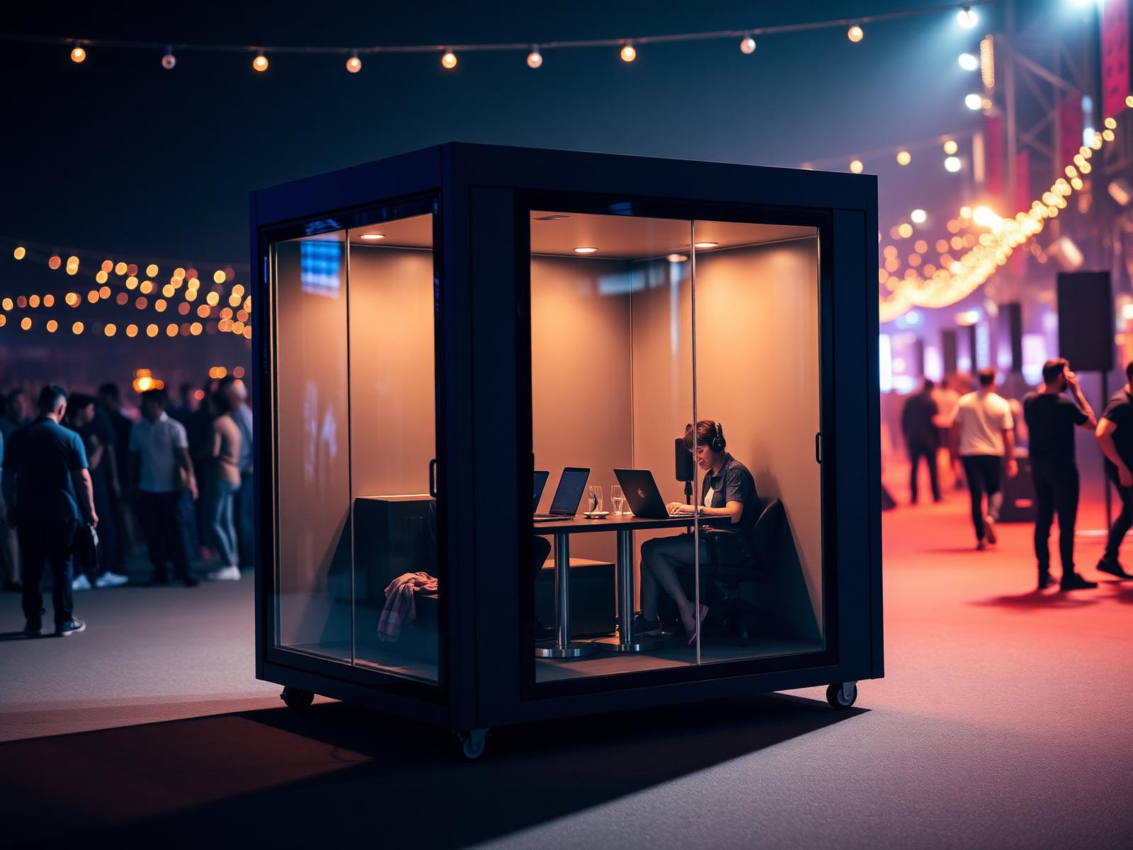Premium soundproof workspace pods delivered to your conference, festival, or pop-up. Built for focus, calls, breakout meetings — and even private fitting rooms for fashion pop-ups.